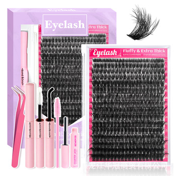 ชุดต่อขนตาแบ่งส่วนแบบทำมือชุดต่อขนตาแบบ DIY 3D ติดฉลากส่วนตัว32แถวทำเองได้แบบ80D